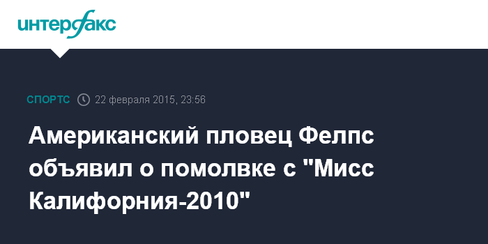 Москва. 22 февраля. INTERFAX.RU - Американский пловец 18-кратный олимпийский чемпион Майкл Фелпс и модель Николь Джонсон объявили о помолвке.