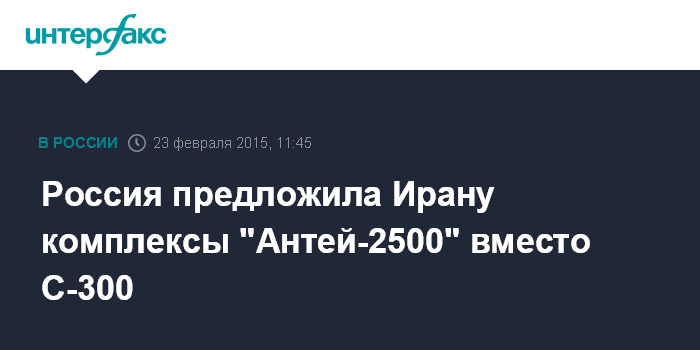 Москва. 23 февраля. INTERFAX.RU - Российская сторона предложила Ирану зенитные ракетные системы "Антей-2500" вместо непоставленных систем С-300, сообщил в понедельник журналистам гендиректор Ростеха Сергей Чемезов.
