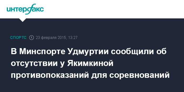 В Минспорте Удмуртии сообщили об отсутствии у Якимкиной противопоказаний для соревнований