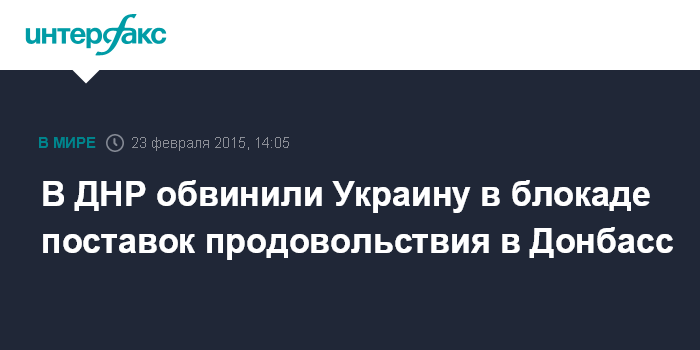 "Проблемы с продовольствием значительные, что нарушает комплекс минских мер от 12 февраля, так как по сей день, несмотря на наши обращения лично к Хайди Тальявини (спецпредставитель председателя ОБСЕ в контактной группе по урегулированию ситуации на Украине - ИФ). У нас происходит полная блокировка всех поставок продуктов питания на нашу территорию со стороны Украины. Предприниматели не могут завести продукцию", - сказал Пушилин в понедельник в интервью "Русской службе новостей".