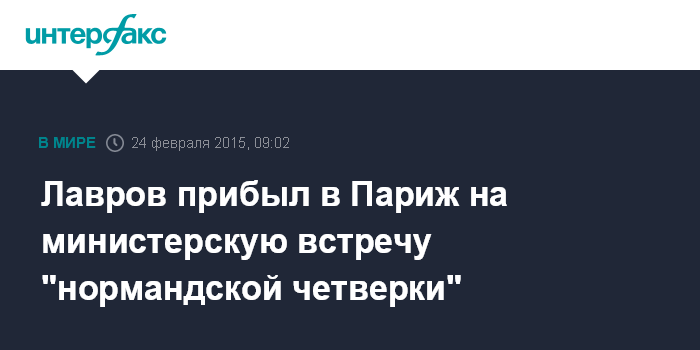 Москва. 24 февраля. INTERFAX.RU - Глава МИД РФ Сергей Лавров во вторник прибыл в Париж для участия во встрече министров иностранных дел стран "нормандской четверки".