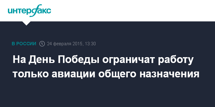 Москва. 24 февраля. INTERFAX.RU - В период празднования 70-летия Победы в Великой Отечественной войне ограничения регулярных рейсов вводиться не будут, они коснутся только авиации общего назначения, сообщил руководитель Росавиации Александр Нерадько.