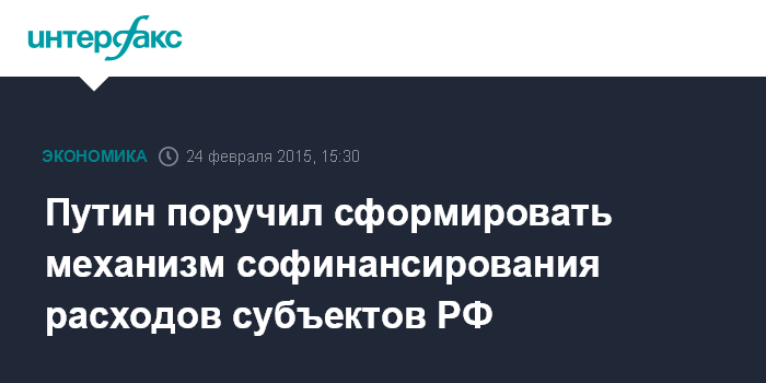 Москва. 24 февраля. INTERFAX.RU - Президент России Владимир Путин поручил правительству сформировать механизм софинансирования расходов субъектов РФ на основе консолидации межбюджетных субсидий.