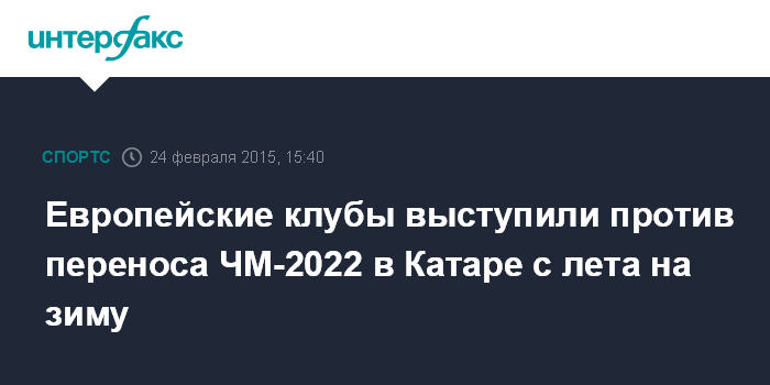Москва. 24 февраля. INTERFAX.RU - Ассоциация Европейских профессиональных футбольных лиг (EPFL) против предложения рабочей группы ФИФА, которая хочет провести чемпионат мира в Катаре в ноябре-декабре 2022 года.
