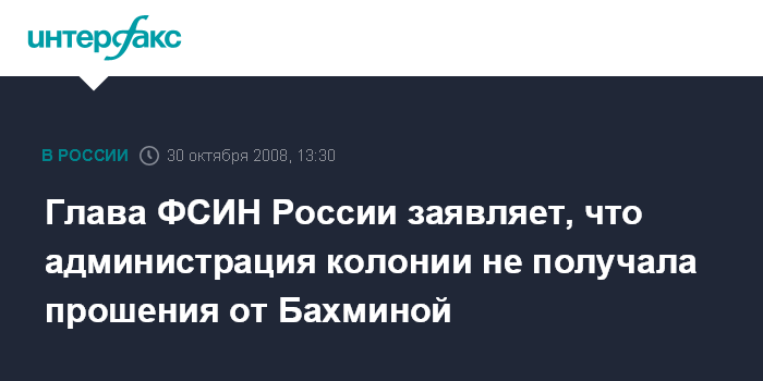 Глава ФСИН России заявляет, что администрация колонии не получала прошения от Бахминой