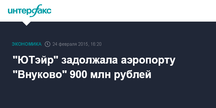 "ЮТэйр" задолжала аэропорту "Внуково" 900 млн рублей