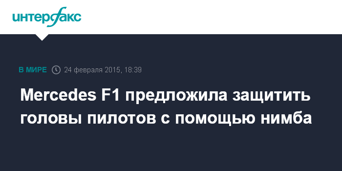 Москва. 24 февраля. INTERFAX.RU - Команда "Формулы-1" Mercedes предлагает решить проблему с безопасностью головы пилотов при помощи элемента специальной конструкции, напоминающего нимб.