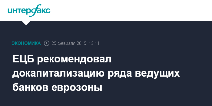 ЕЦБ рекомендовал докапитализацию ряда ведущих банков еврозоны