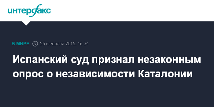 Москва. 25 февраля. INTERFAX.RU - Конституционный суд Испании признал незаконным опрос о самоопределении Каталонии, прошедший 9 ноября, сообщает в среду агентство EFE.