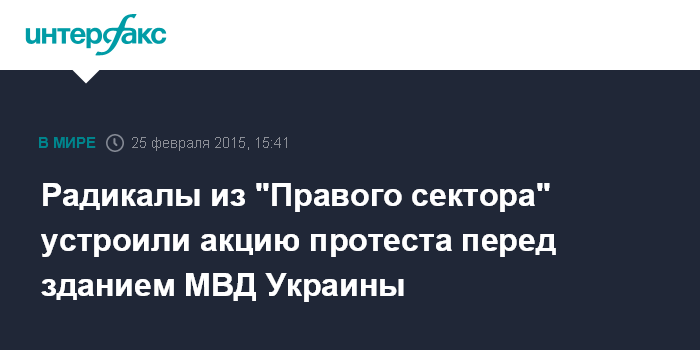 Москва. 25 февраля. INTERFAX.RU - Свыше тысячи членов и сторонников экстремистской организации "Правый сектор" (деятельность ее запрещена в РФ решением суда - ИФ) проводят в среду митинг перед зданием министерства внутренних дел Украины в Киеве.