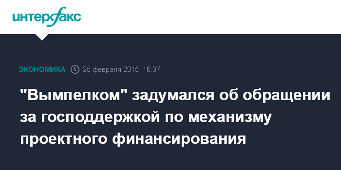 Москва. 25 февраля. INTERFAX.RU – "Вымпелком" может обратиться к государству за поддержкой в рамках механизма проектного финансирования, сообщил "Интерфаксу" источник, близкий к компании.