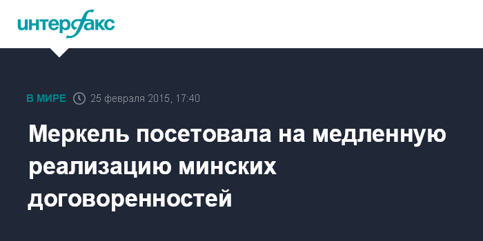 Москва. 25 февраля. INTERFAX.RU - Процесс имплементации минских соглашений по урегулированию конфликта на востоке Украины происходит слишком медленно, приводит британское издание The Daily Mail слова канцлера Германии Ангелы Меркель.