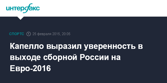 Москва. 25 февраля. INTERFAX.RU - Главный тренер сборной России по футболу Фабио Капелло выразил уверенность в том, что его команде удастся завоевать путевку на чемпионат Европы 2016 года.