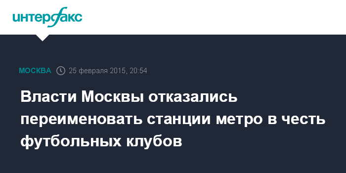 Накануне "Интерфакс" сообщил, что футбольные болельщики обратились к столичным властям с просьбой переименовать станции метро "Черкизовская" в "Локомотив", а "Автозаводскую" в "Торпедо".