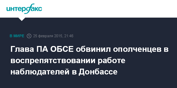 Глава ПА ОБСЕ обвинил ополченцев в воспрепятствовании работе наблюдателей в Донбассе