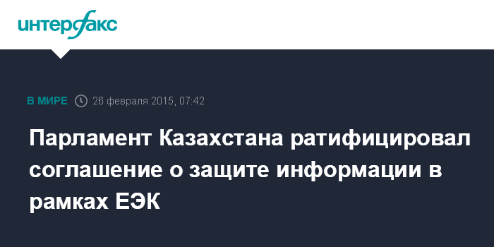 Парламент Казахстана ратифицировал соглашение о защите информации в рамках ЕЭК