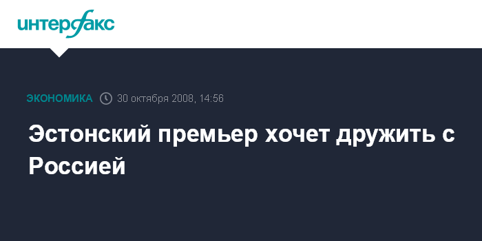 Москва. 30 октября. INTERFAX.RU - Премьер-министр Эстонии Андрус Ансип выразил удовлетворение развитием экономических отношений с Россией, в то же время призвав предпринимателей проявлять осторожность в сотрудничестве с восточным соседом.