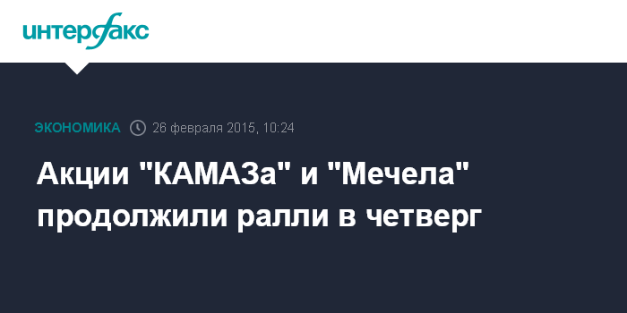 Москва. 26 февраля. INTERFAX.RU – Акции "КАМАЗа" и "Мечела" утром в четверг продолжают ралли, прибавляя 11-15% на фоне возросшего на этой неделе спроса за счет корпоративных новостей.