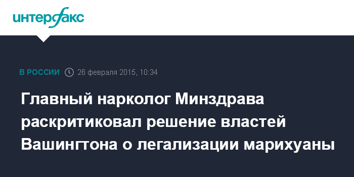Москва. 26 февраля. INTERFAX.RU - Главный нарколог Минздрава Евгений Брюн подверг критике решение властей столицы США Вашингтона легализовать марихуану.