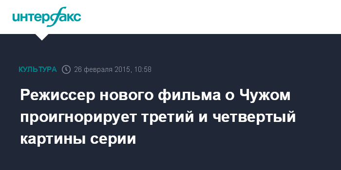 Москва. 26 февраля. INTERFAX.RU - Режиссер нового фильма о Чужом Нил Бломкамп в интервью Sky Movies заявил, что проигнорирует третий и четвертый фильм франшизы.