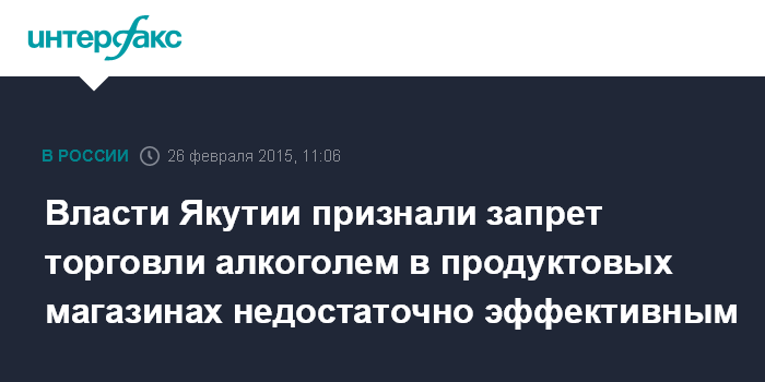 Москва. 26 февраля. INTERFAX.RU - Решение властей Якутии продавать спиртное только в специализированных магазинах, как выяснилось, оказалось недостаточно эффективной мерой в борьбе с алкоголизмом в регионе.