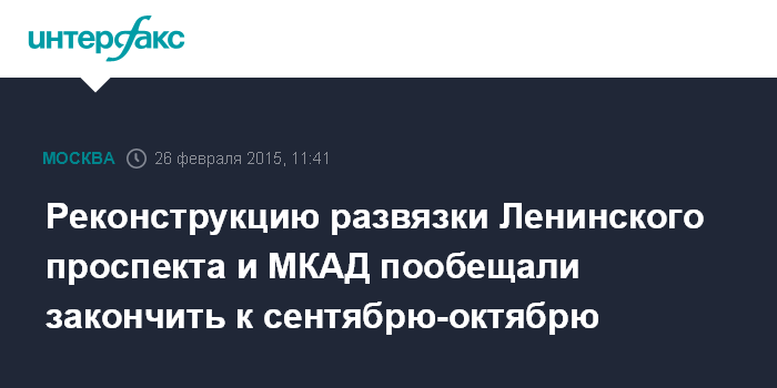 Москва. 26 февраля. INTERFAX.RU - Работы по реконструкции развязки Ленинского проспекта и МКАД на юго-западе Москвы завершатся в сентябре-октябре этого года, сообщил в четверг мэр столицы Сергей Собянин.
