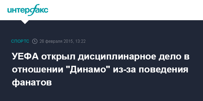 Москва. 26 февраля. INTERFAX.RU - Союз европейских футбольных ассоциаций (УЕФА) открыл дисциплинарное дело в отношении московского "Динамо", говорится в сообщении пресс-службы организации.