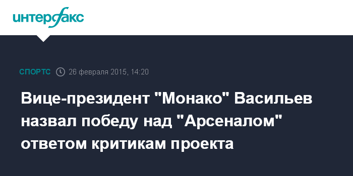 Вице-президент "Монако" Васильев назвал победу над "Арсеналом" ответом критикам проекта