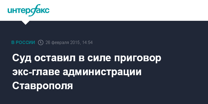 Москва. 26 февраля. INTERFAX.RU - Ставропольский краевой суд отказал в удовлетворении аппеляционной жалобы на приговор по делу о взяточничестве в отношении бывшего главы администрации Ставрополя Игоря Бестужего.