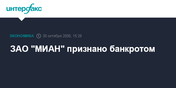 ЗАО "МИАН" признано банкротом