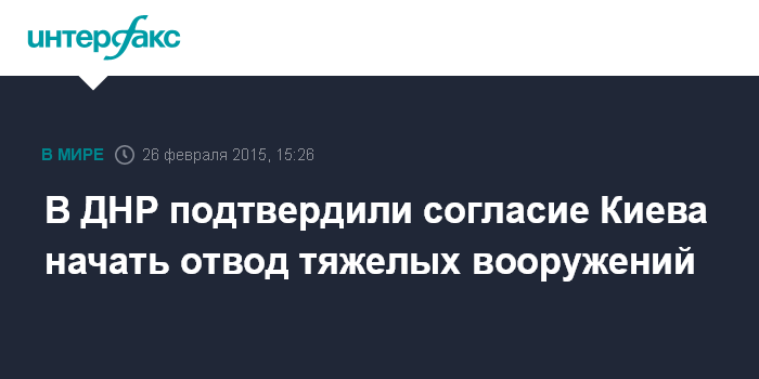 Москва. 26 февраля. INTERFAX.RU - В руководстве самопровозглашенной Донецкой народной республики располагают сведениями о согласии Киева на отвод тяжелых вооружений в Донбассе.