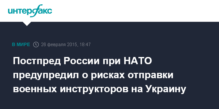 Москва. 26 февраля. INTERFAX.RU - Направление некоторыми странами, в частности, Великобританией и Польшей военных инструкторов на Украину не будет способствовать реализации минских договоренностей и приведет к обострению ситуации, заявил постпред РФ при НАТО Александр Грушко.