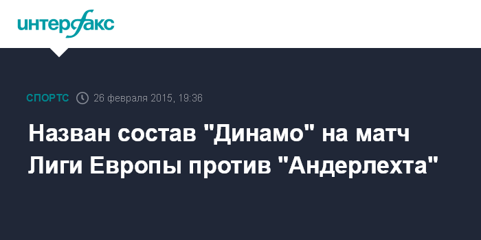 Москва. 26 февраля. INTERFAX.RU - Тренерский штаб московского ФК "Динамо" обнародовал стартовый состав команды на ответную встречу 1/16 финала Кубка УЕФА против бельгийского "Андерлехта".