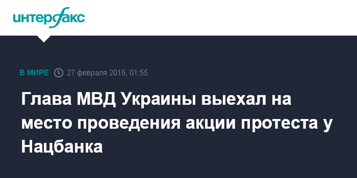 Москва. 27 февраля. INTERFAX.RU - Министр внутренних дел Украины Арсен Аваков выехал на место проведения митинга у Нацбанка, сообщает пресс-служба МВД.