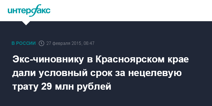 Экс-чиновнику в Красноярском крае дали условный срок за нецелевую трату 29 млн рублей