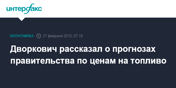 Москва. 27 февраля. INTERFAX.RU - Правительство РФ не прогнозирует резкого роста цен на топливо весной этого года, сообщил журналистам вице-премьер РФ Аркадий Дворкович на Красноярском экономическом форуме.