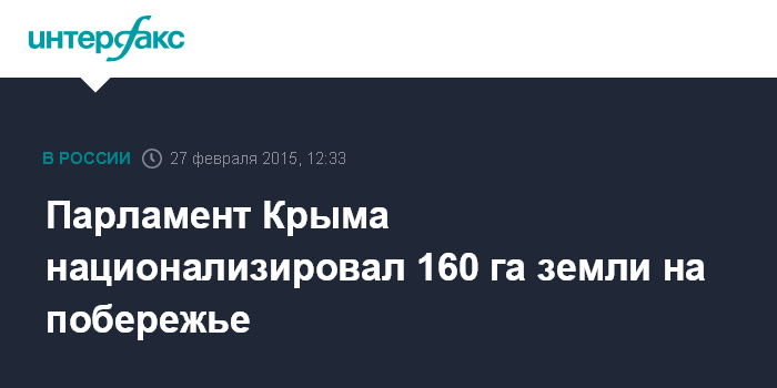 Москва. 27 февраля. INTERFAX.RU - Государственный совет Крыма в пятницу вернул в собственность республики участки земли на берегу моря возле Алушты площадью 160 гектаров, выделенные под застройку частным лицам в период, когда Крым входил в состав Украины.