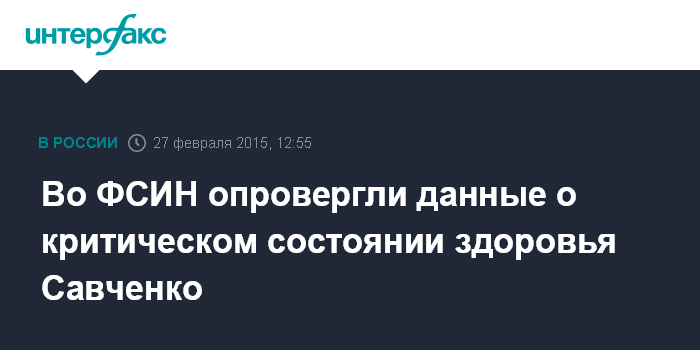 Во ФСИН опровергли данные о критическом состоянии здоровья Савченко