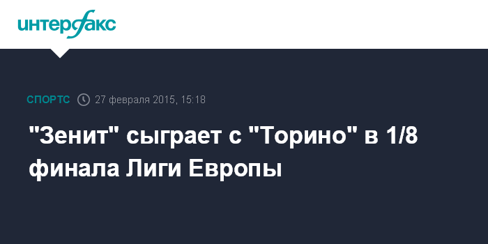 Москва. 27 февраля. INTERFAX.RU - Итальянский "Торино" стал соперником петербургского ФК "Зенит" в 1/8 финала Лиги Европы УЕФА.
