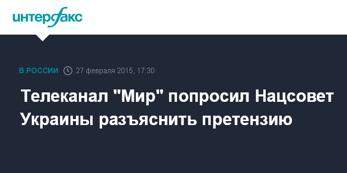 Телеканал "Мир" попросил Нацсовет Украины разъяснить претензию
