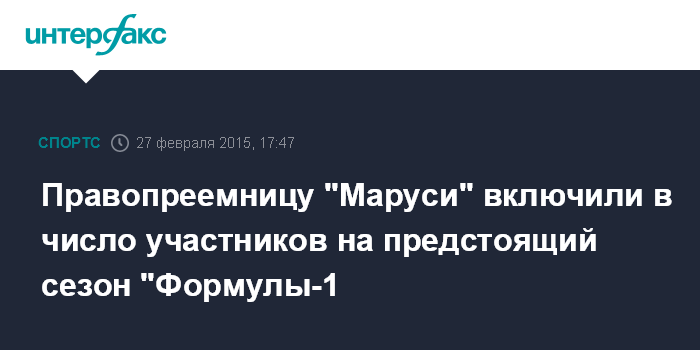 Москва. 27 февраля. INTERFAX.RU - Команда "Формулы-1" "Манор", ранее выступавшая под названием "Маруся", включена в состав участников на предстоящий сезон, сообщает пресс-служба Международной автомобильной федерации (ФИА).