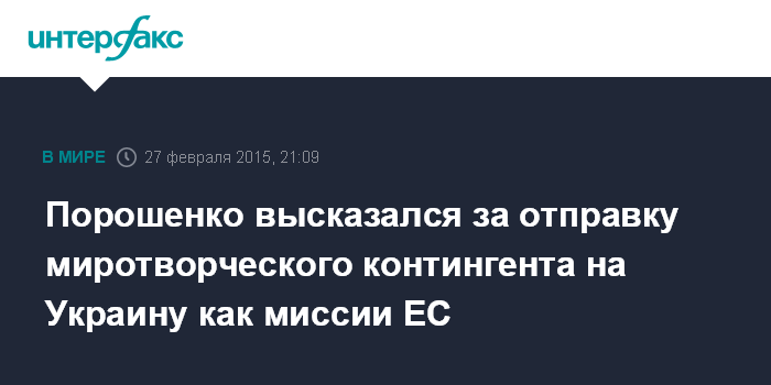 Порошенко высказался за отправку миротворческого контингента на Украину как миссии ЕС
