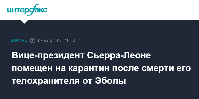 Москва. 1 марта. INTERFAX.RU - Вице-президент Сьерра-Леоне Самуэль Сам-Сумана помещен на карантин после того, как один из его телохранителей скончался от Эболы, передает в воскресенье британская BBC.