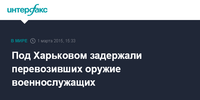 Москва. 1 марта. INTERFAX.RU - Под Харьковом в районе окружной дороги были задержаны двое военнослужащих, перевозивших оружие и боеприпасы, сообщил советник главы МВД, народный депутат Антон Геращенко.