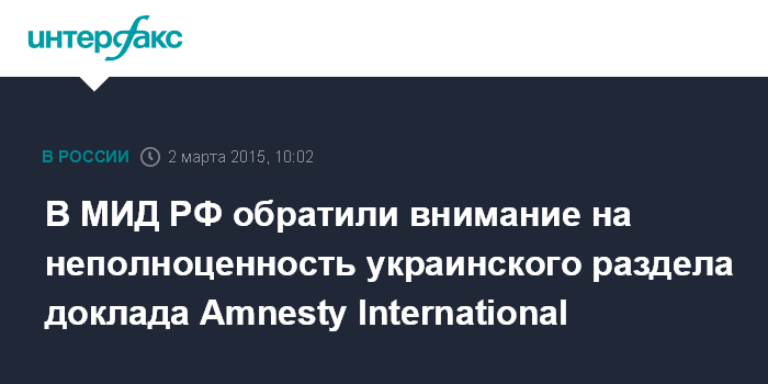 В МИД РФ обратили внимание на неполноценность украинского раздела доклада Amnesty International