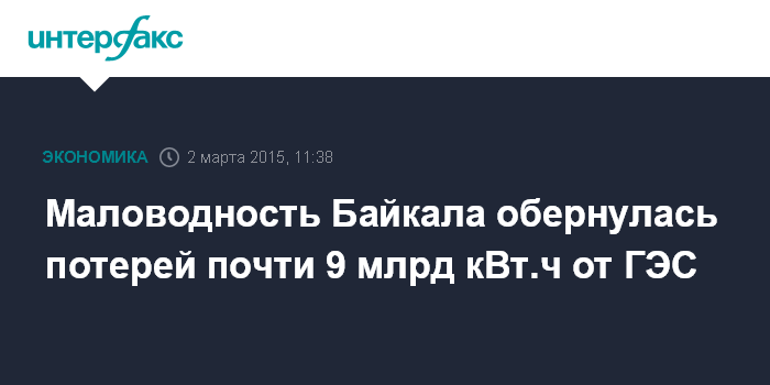 Москва. 2 марта. INTERFAX.RU – Снижение уровня воды в Байкальском бассейне привело к уменьшению выработки гидроэлектростанций примерно на 9 млрд кВт.ч, сообщил министр энергетики Александр Новак на встрече с президентом Владимиром Путиным.