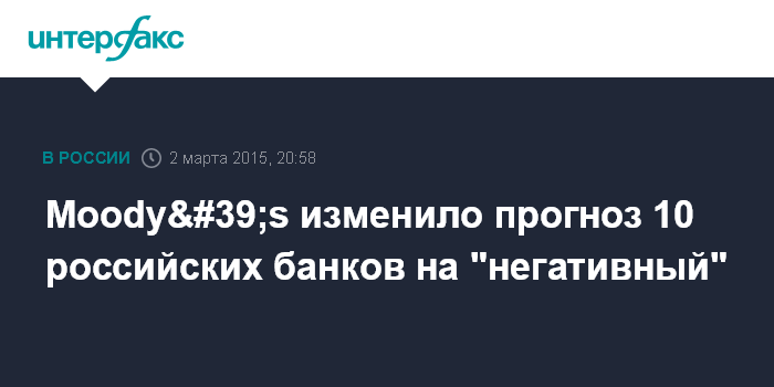 Moody's изменило прогноз 10 российских банков на "негативный"