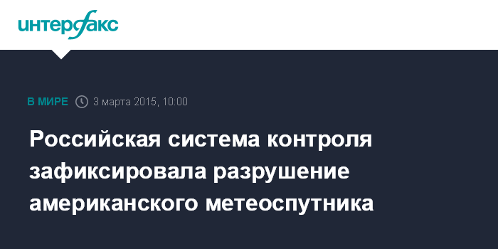 Российская система контроля зафиксировала разрушение американского метеоспутника