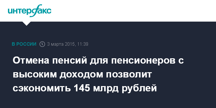 Отмена пенсий для пенсионеров с высоким доходом позволит сэкономить 145 млрд рублей