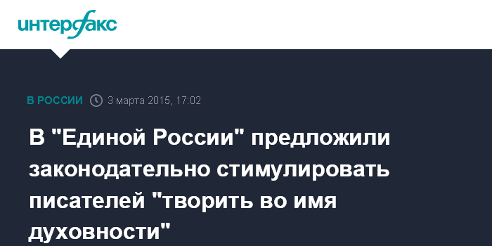 В "Единой России" предложили законодательно стимулировать писателей "творить во имя духовности"